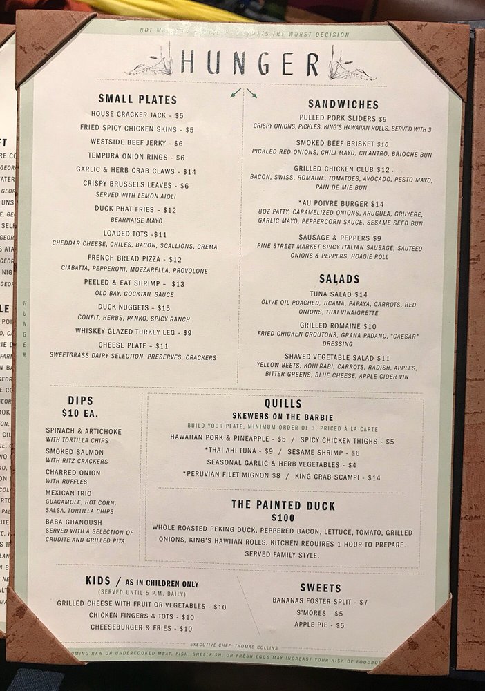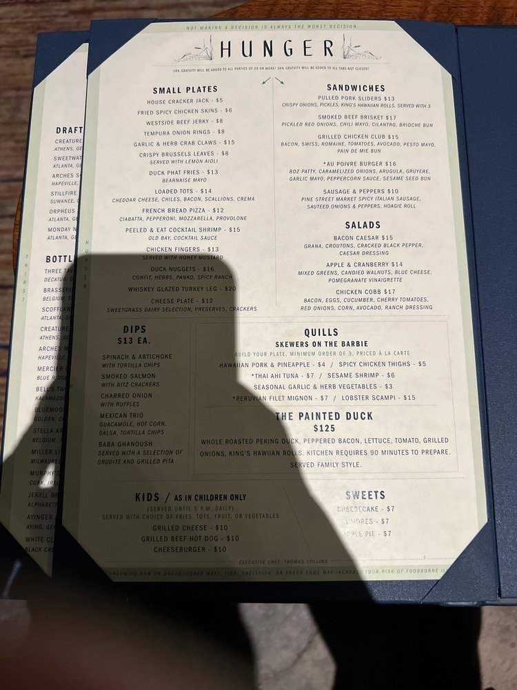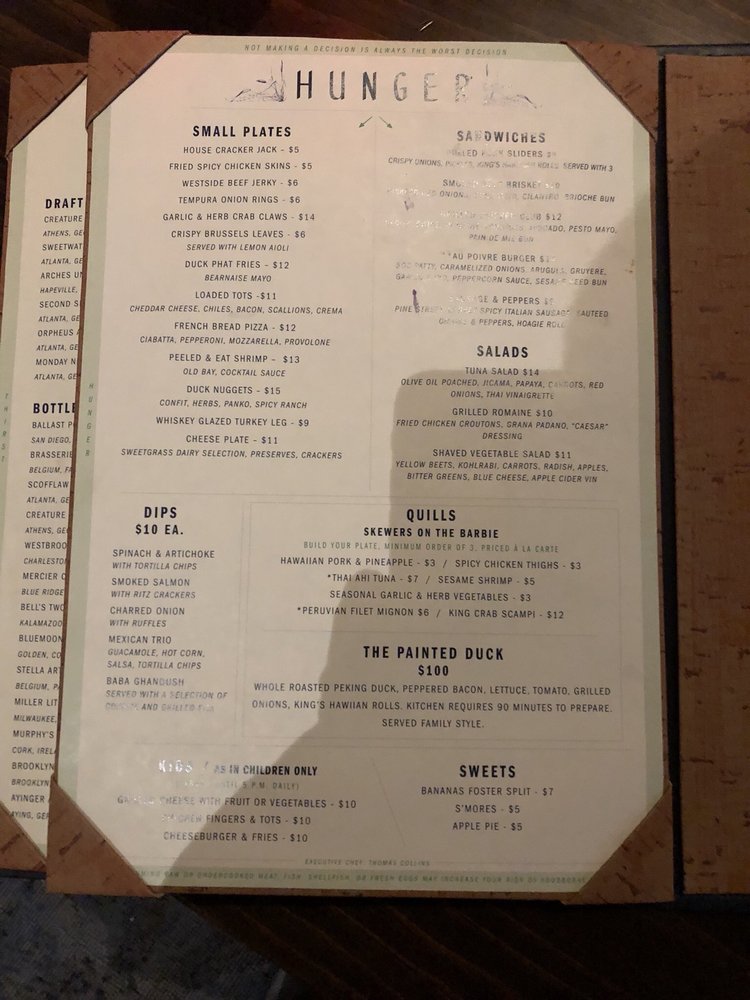 Introducing The Painted Duck: a trendy, classy bar in Atlanta offering a unique experience for patrons. With a focus on providing a fun atmosphere, this establishment features bowling, horseshoes, darts, and other games for entertainment. The venue boasts a stylish interior with a large bar and clean, modern decor. The highlight of the experience lies in the impressive drink menu, featuring creative cocktails like the Pond Water and Frozen Duck. However, some customers note that the food offerings, such as pork sliders and triple dip, are only decent. The ambiance is enhanced by live music and a vibrant crowd, making it an ideal spot for group gatherings. Overall, The Painted Duck offers a lively setting with a diverse range of activities, making it a must-visit destination for those seeking a unique night out.